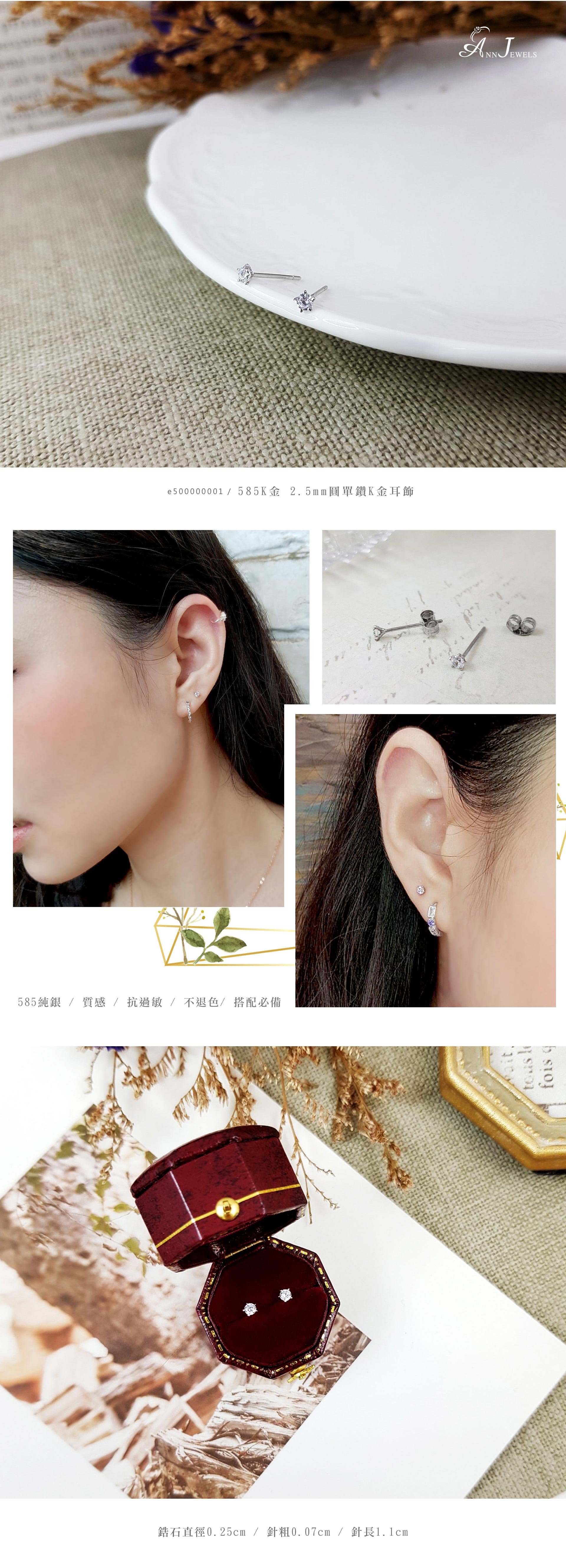 | 585K金 | 鋯石直徑0.25cm 針粗0.07cm 針長1.1cm | 耳環一對 |