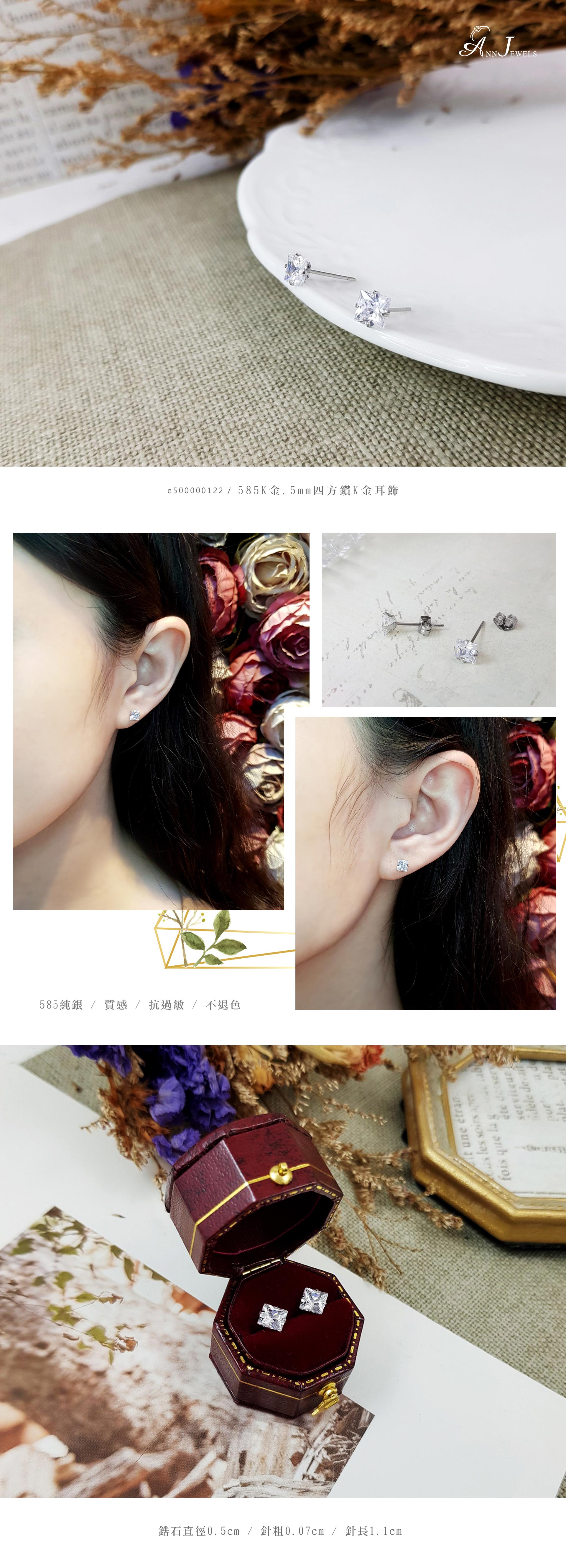 585K金|5mm四方鑽耳飾 e500000122