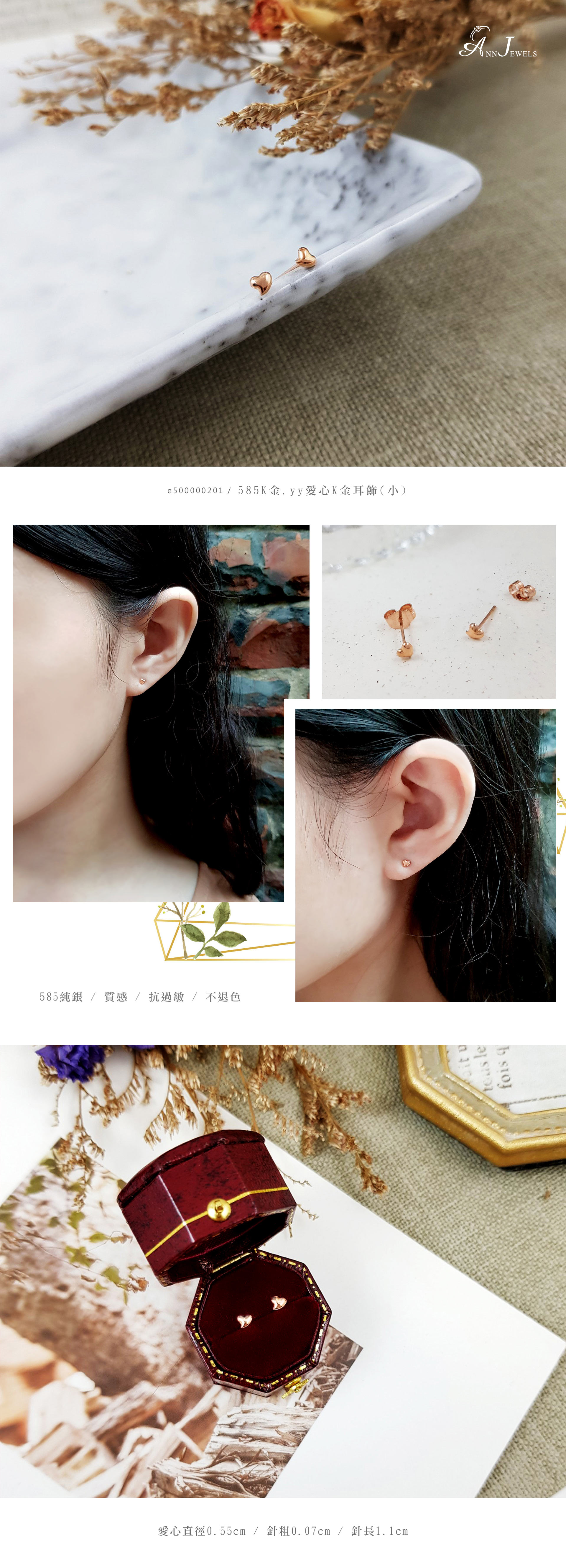 | 585K金 | 愛心直徑0.55cm 針粗0.07cm 針長1.1cm | 耳環一對 |
