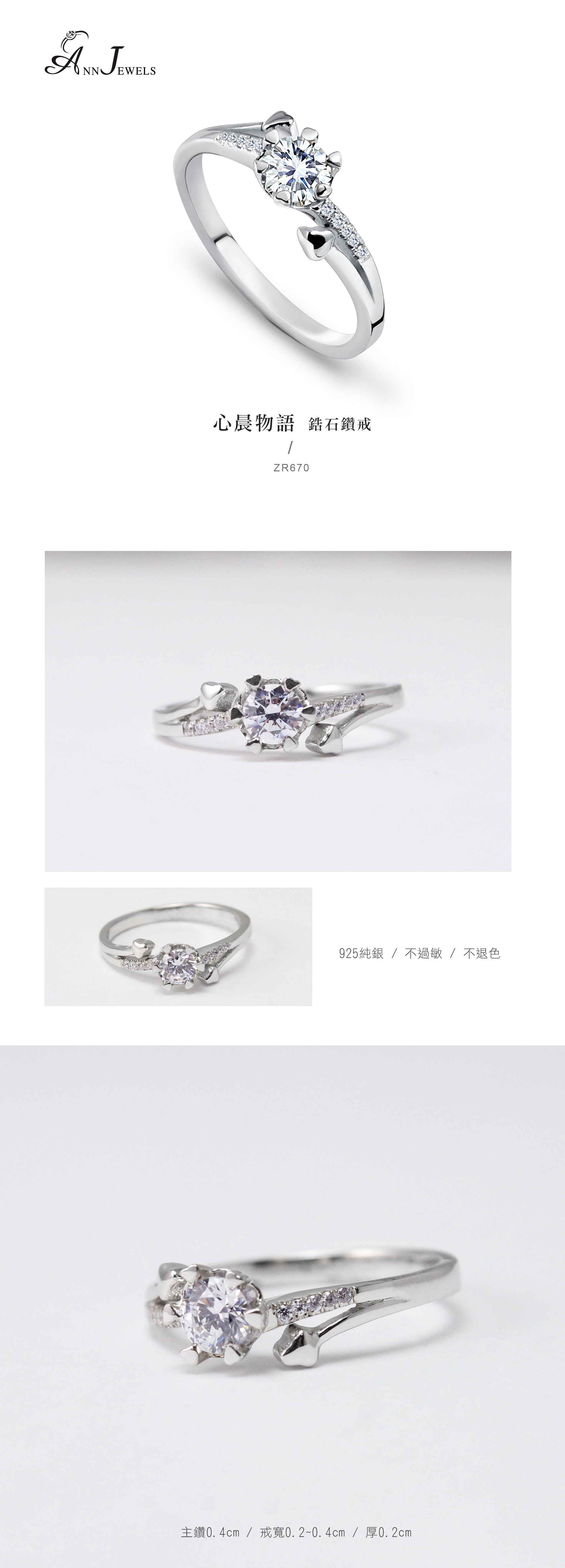 主鑽0.4cm 戒寬0.2-0.4cm 厚0.2cm 戒圍#09~#12 (以文具尺測量,些微誤差±0.5cm為正常值) | 戒指1個 |