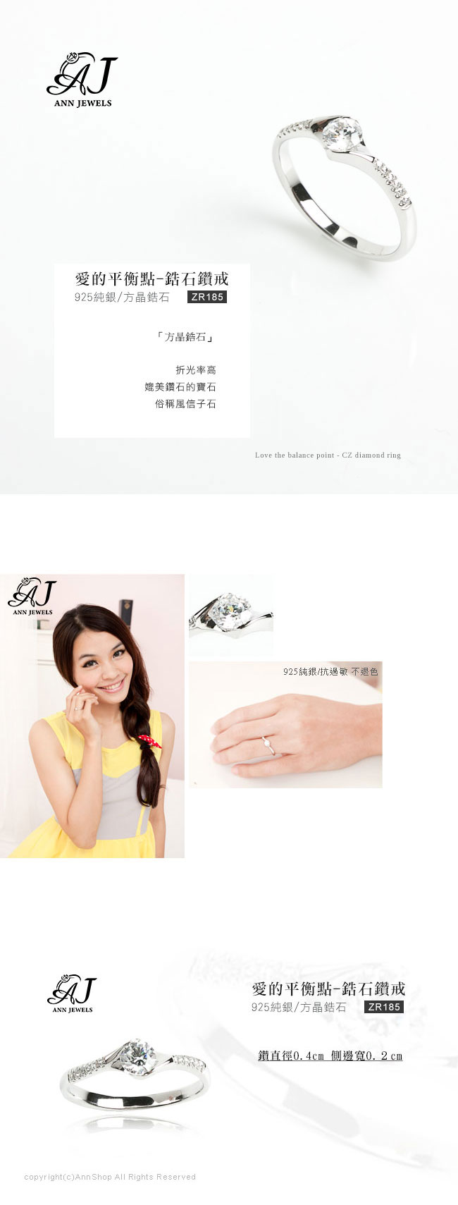 | 925純銀 | 鑽直徑0.4cm 側邊寬0.2cm | 戒指1個 |