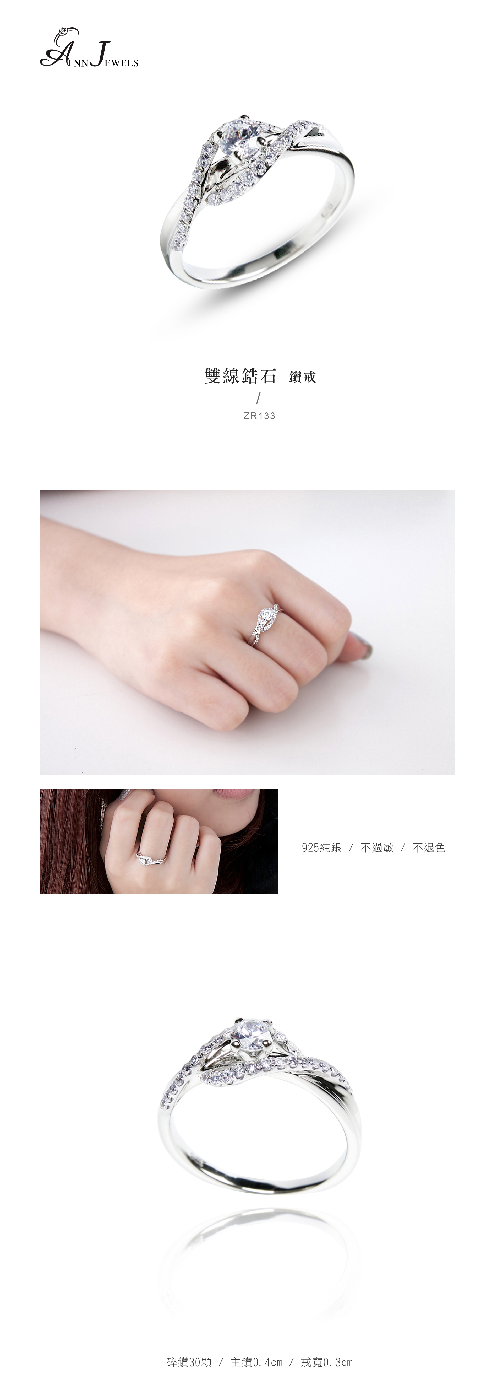 | 925純銀 | 主石0.4cm 碎鑽30顆 圓直徑1.1cm 戒寬0.3cm