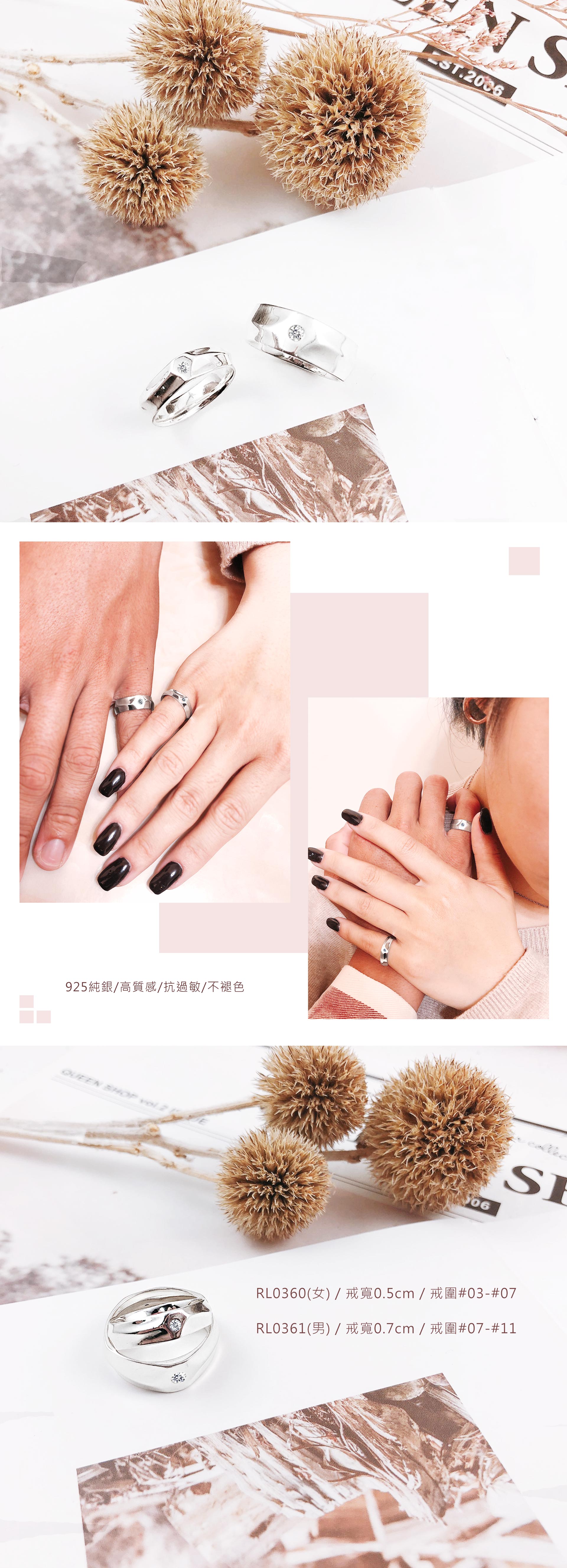 | 925純銀 | 女款戒寬0.5cm,男款戒寬0.7cm 女款美國圍#03~#08,男款美國圍#06~#10 | 戒指1個 |