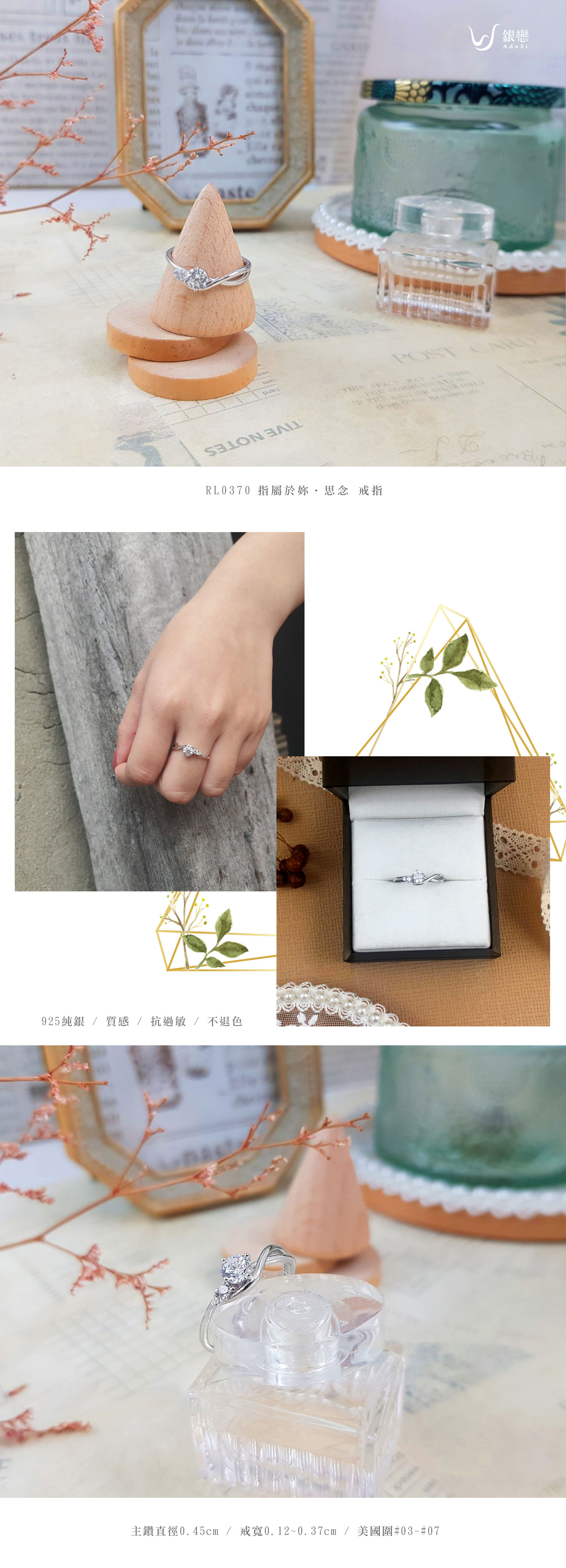| 925純銀 | 主鑽直徑0.45cm 戒寬0.12~0.37cm 美國圍#03~#07 | 戒指1個 |