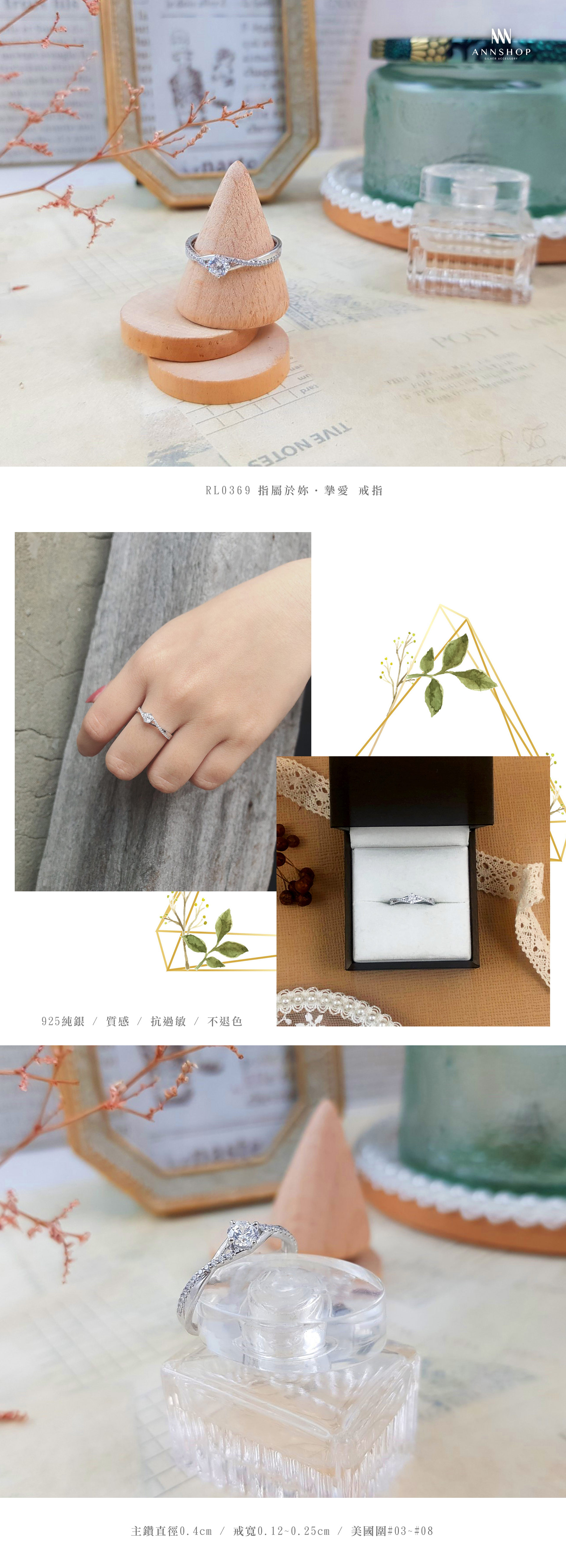 | 925純銀 | 主鑽直徑0.4cm 戒寬0.12~0.25cm 美國圍#03~#08 | 戒指1個 |