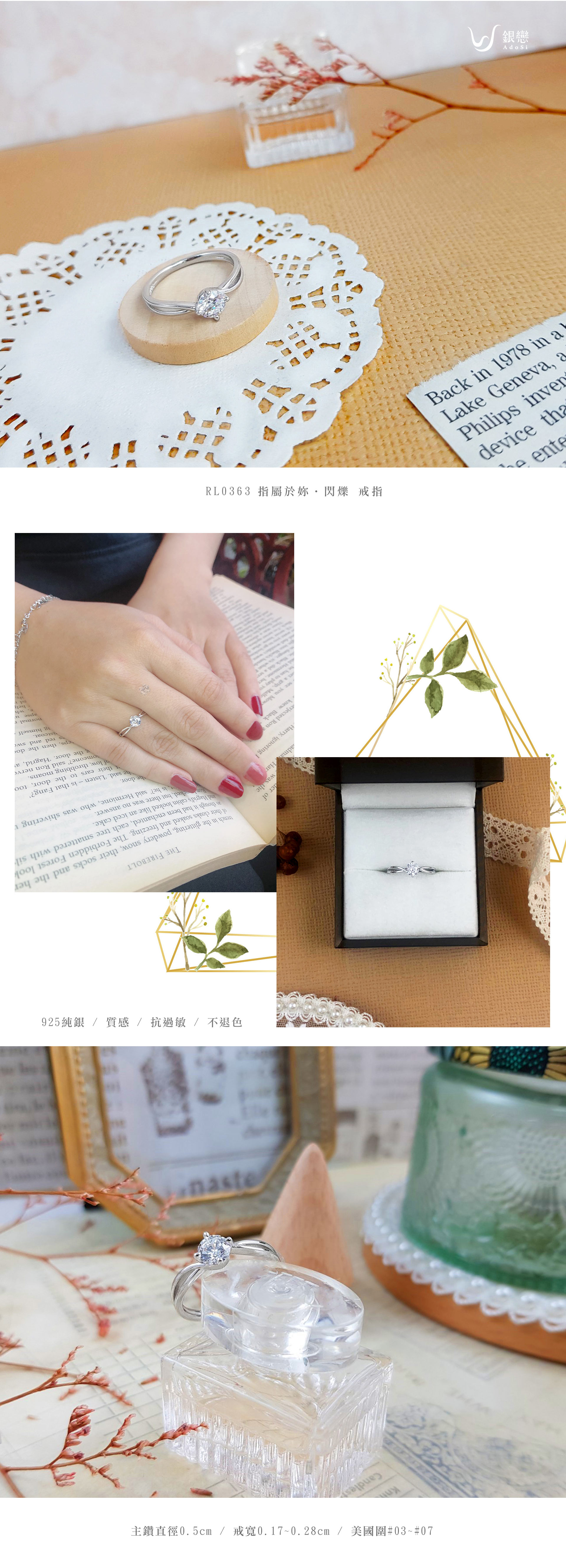 | 925純銀 | 主鑽直徑0.5cm 戒寬0.17~0.28cm 美國圍#03~#07 | 戒指1個 |