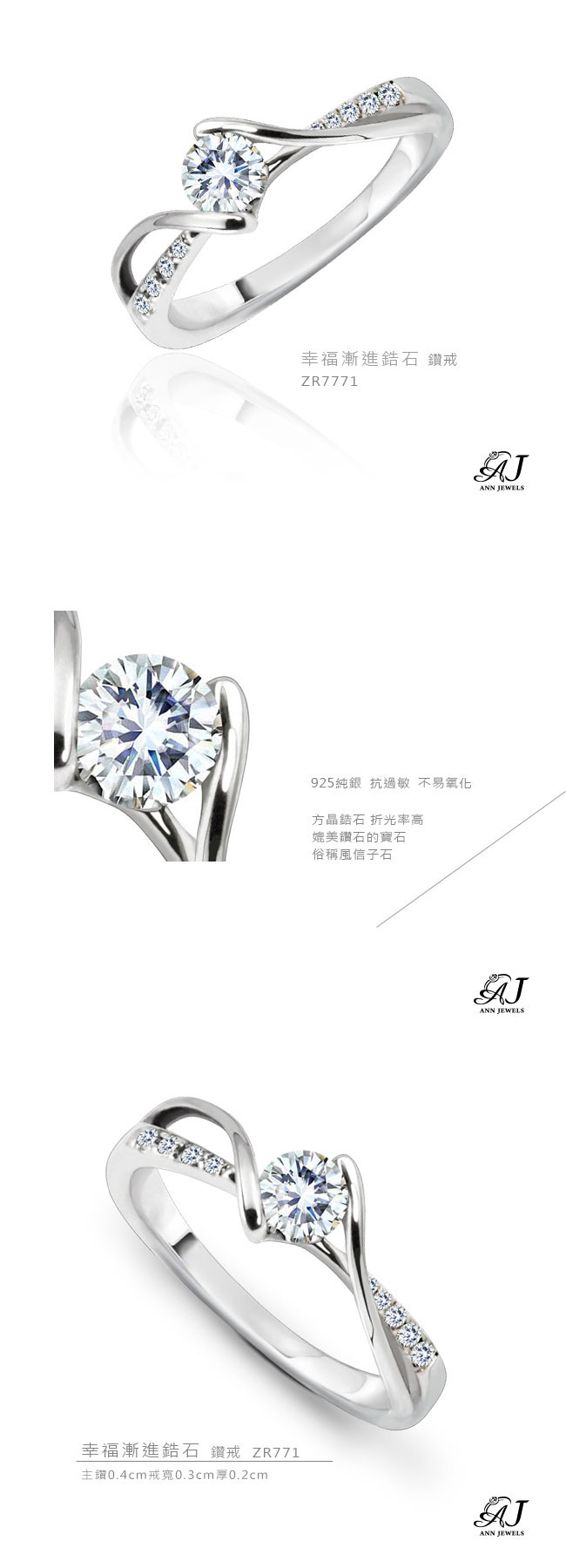 | 925純銀 | 主鑽0.4cm 戒寬0.3cm 厚0.2cm | 戒指1個 |