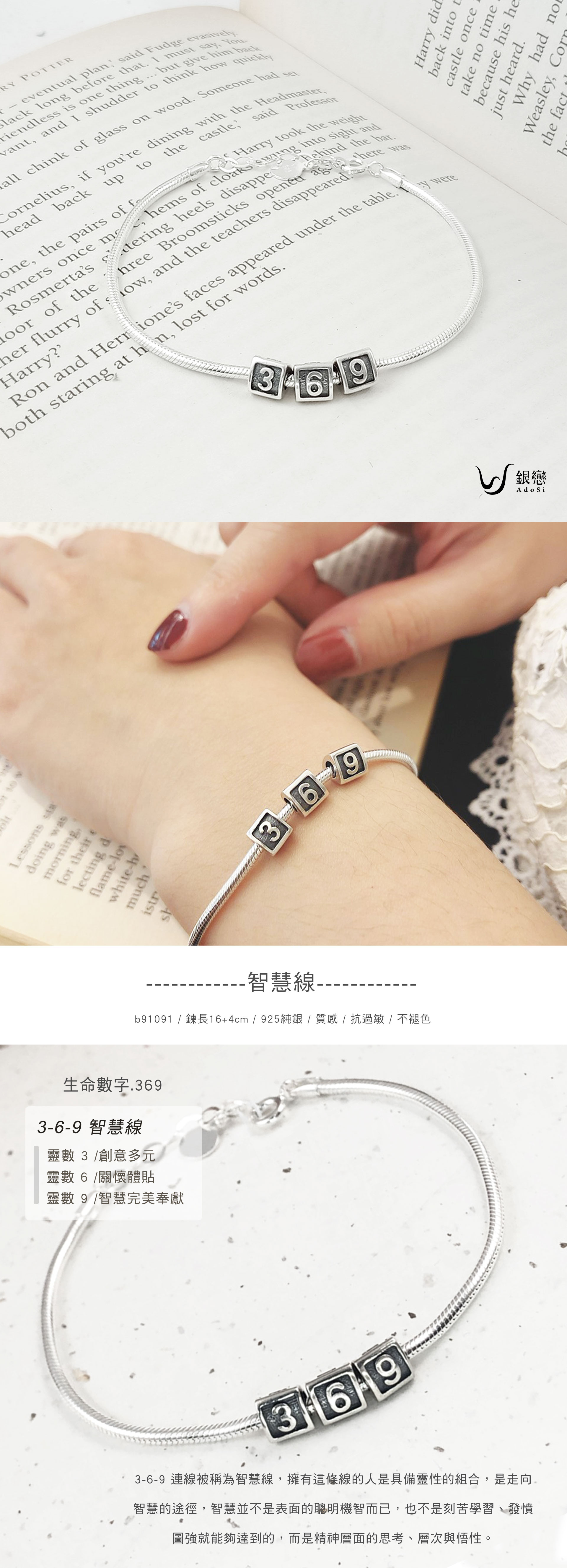 925純銀|生命靈數手鍊.369智慧線 b91091-p901496-3-69