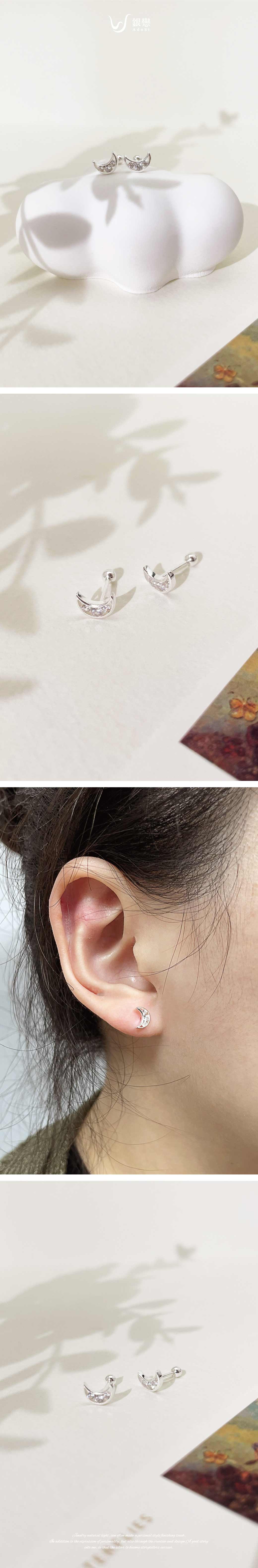 | 925純銀 | 月亮尺寸:0.7X0.35cm | 耳環一 對 |