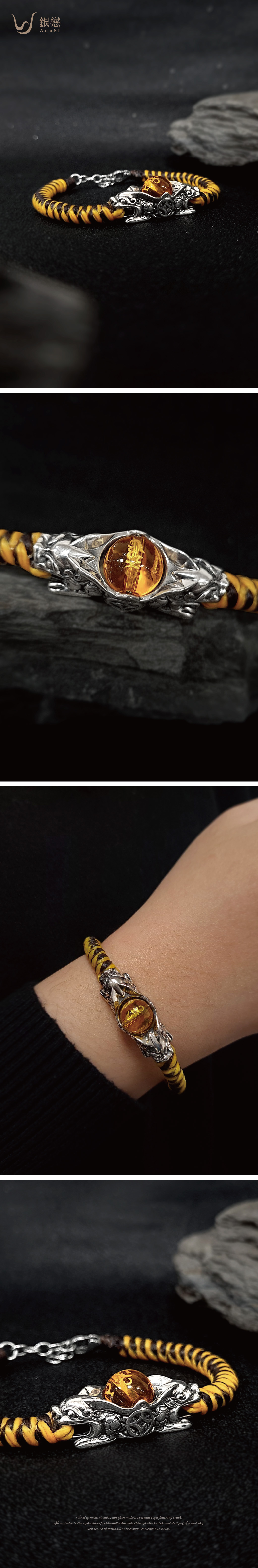 材質:925純銀 / 黑黃蠟繩