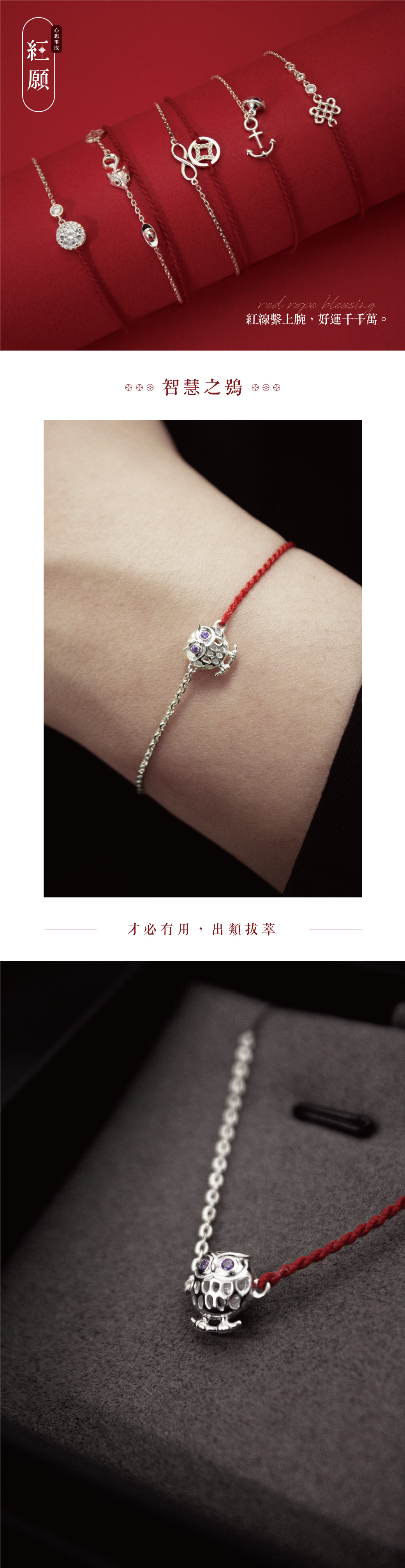 925純銀|智慧之鴞紅線手鍊 HL0269-1B01