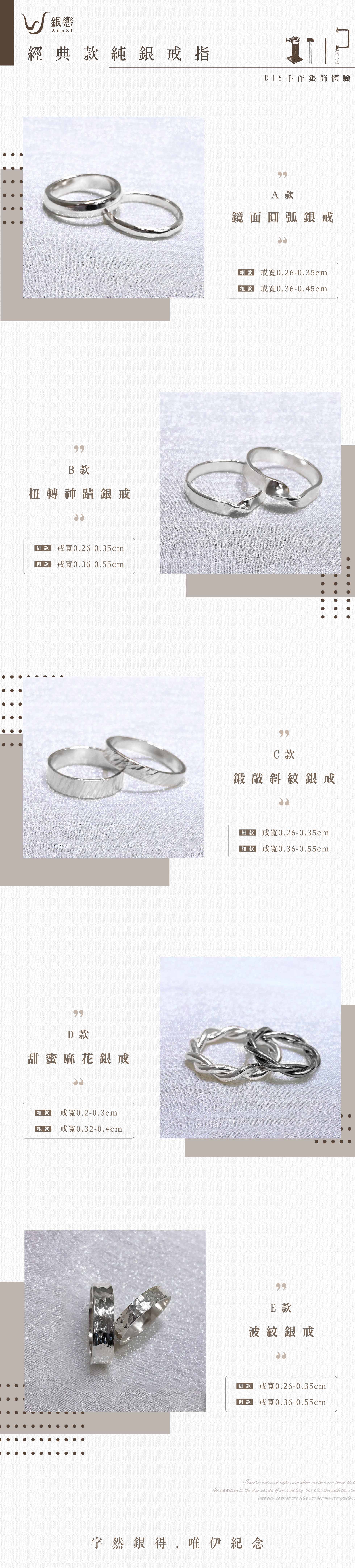 | 925純銀 | 細版戒寬0.2~0.35cm | 戒指1個 |