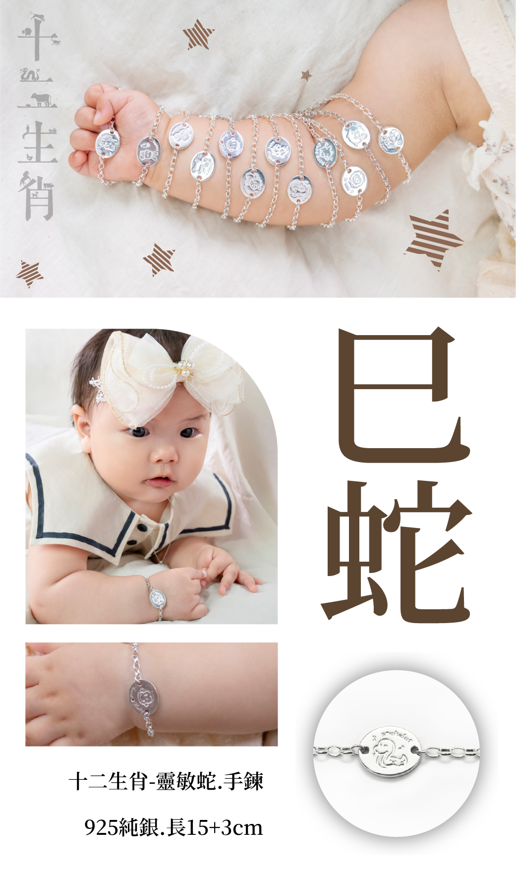 | 採925純銀材質打造【抗過敏】【不退色】【不生鏽】 銀有祈福保平安的寓意,是彌月或生日的最佳禮品 好看之餘更是對寶貝們最美好的祝福 享一年保固,永久免費清潔保養 | ||