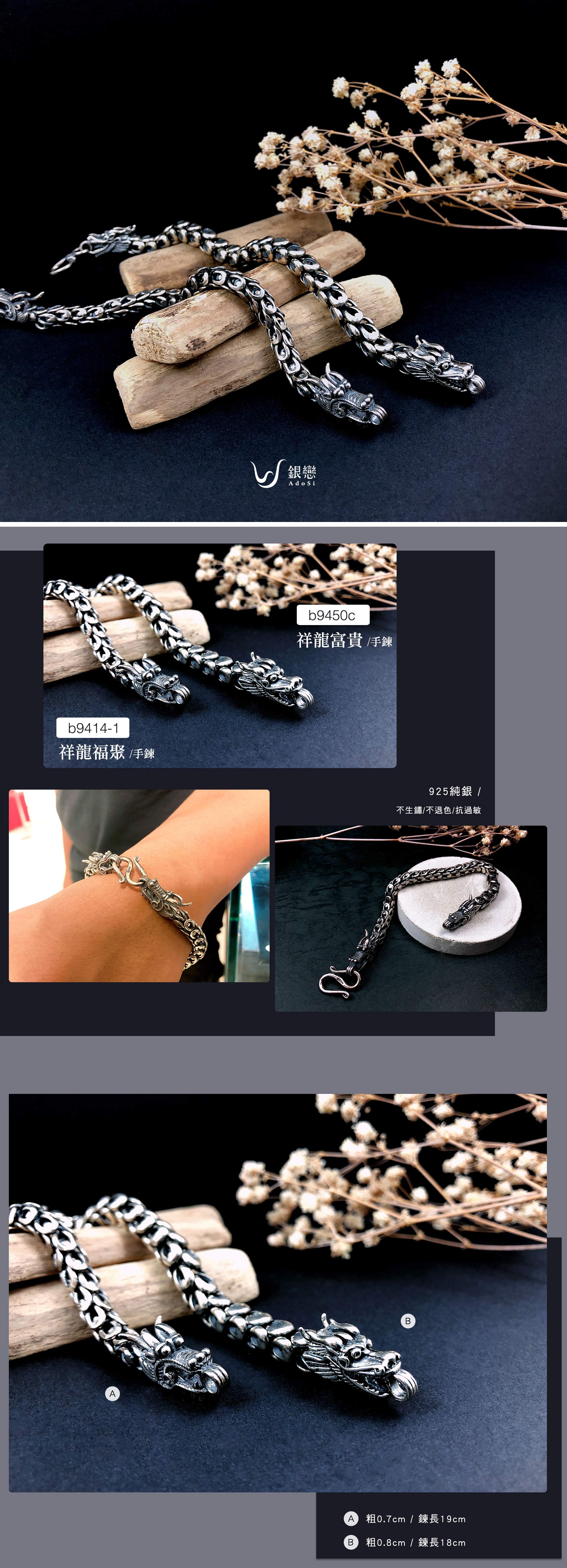 | 925純銀 | b9414-1 粗0.7cm 長19cm b9450C 粗0.8cm 長18cm | 手鍊1條 |