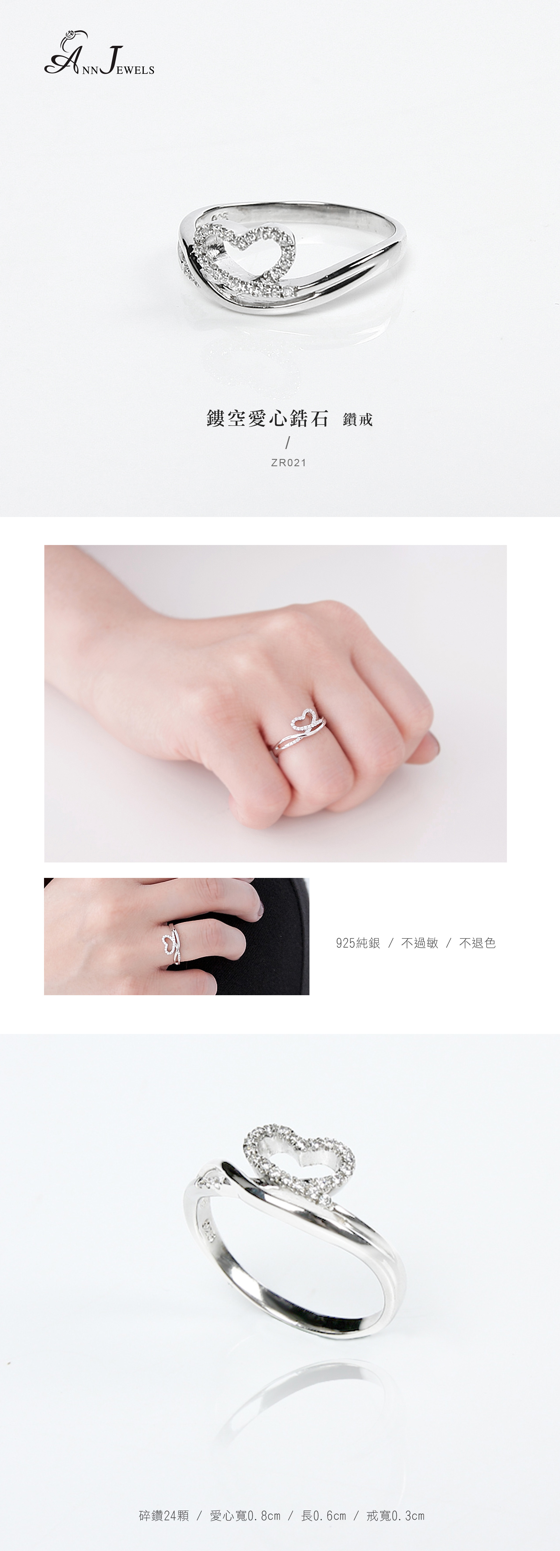 | 925純銀 | 碎鑽24顆 愛心寬0.8cm 長0.6cm 戒寬0.3cm