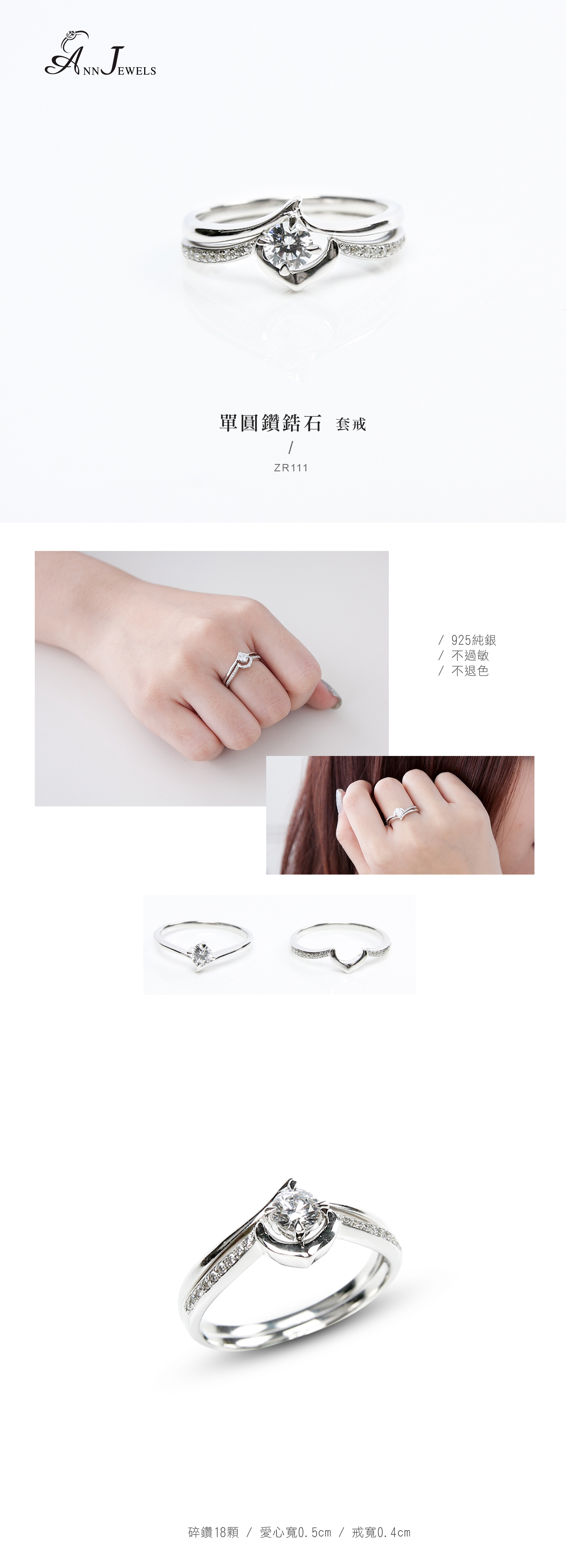 | 925純銀 | 主石0.5cm 碎鑽18顆 戒寬0.4cm