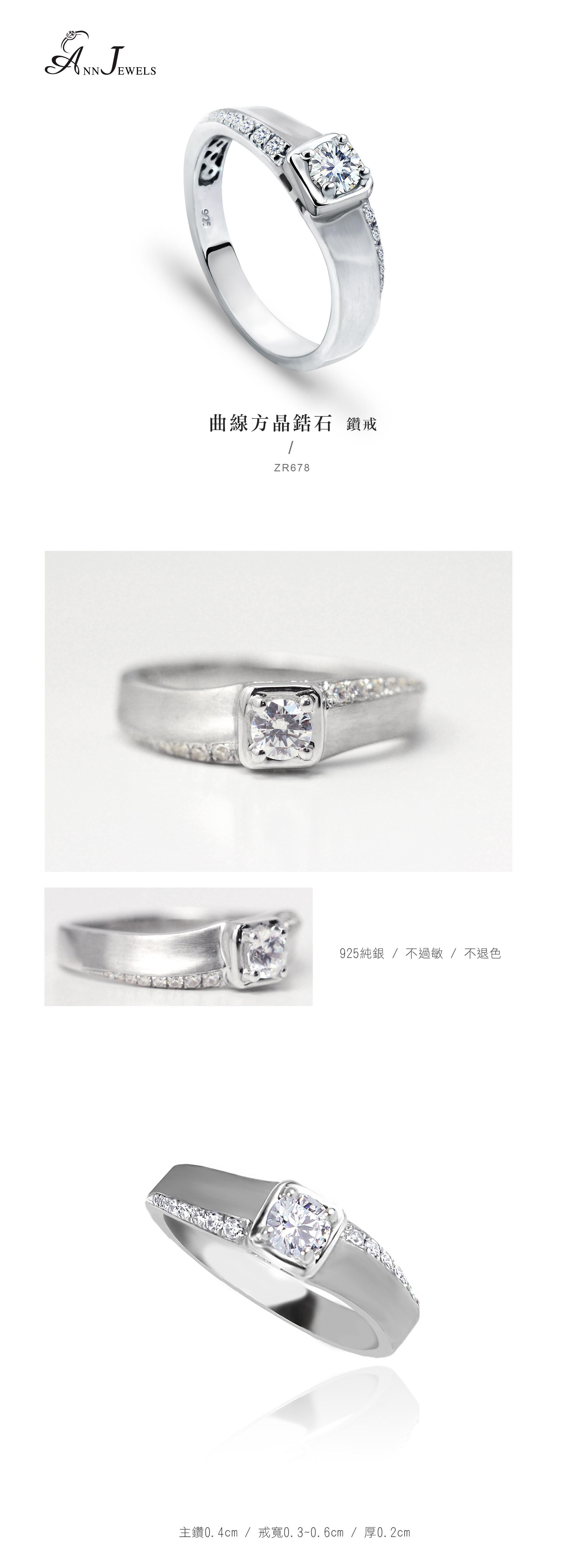 主鑽0.4cm 戒寬0.3-0.6cm 厚0.2cm 戒圍#09~#12 (以文具尺測量,些微誤差±0.5cm為正常值) | 戒指1個 |