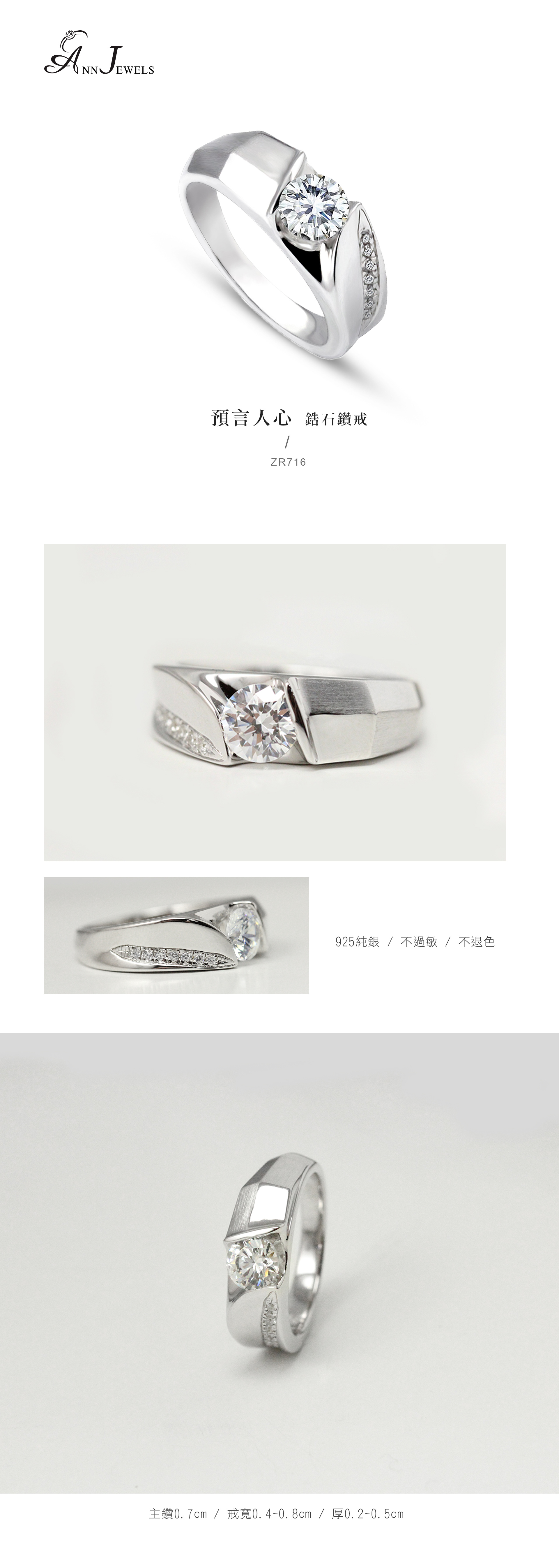 主鑽0.7cm 戒寬0.4-0.8cm 厚0.2-0.5cm 戒圍 #12-#17 (以文具尺測量,些微誤差±0.5cm為正常值) | 戒指1個 |