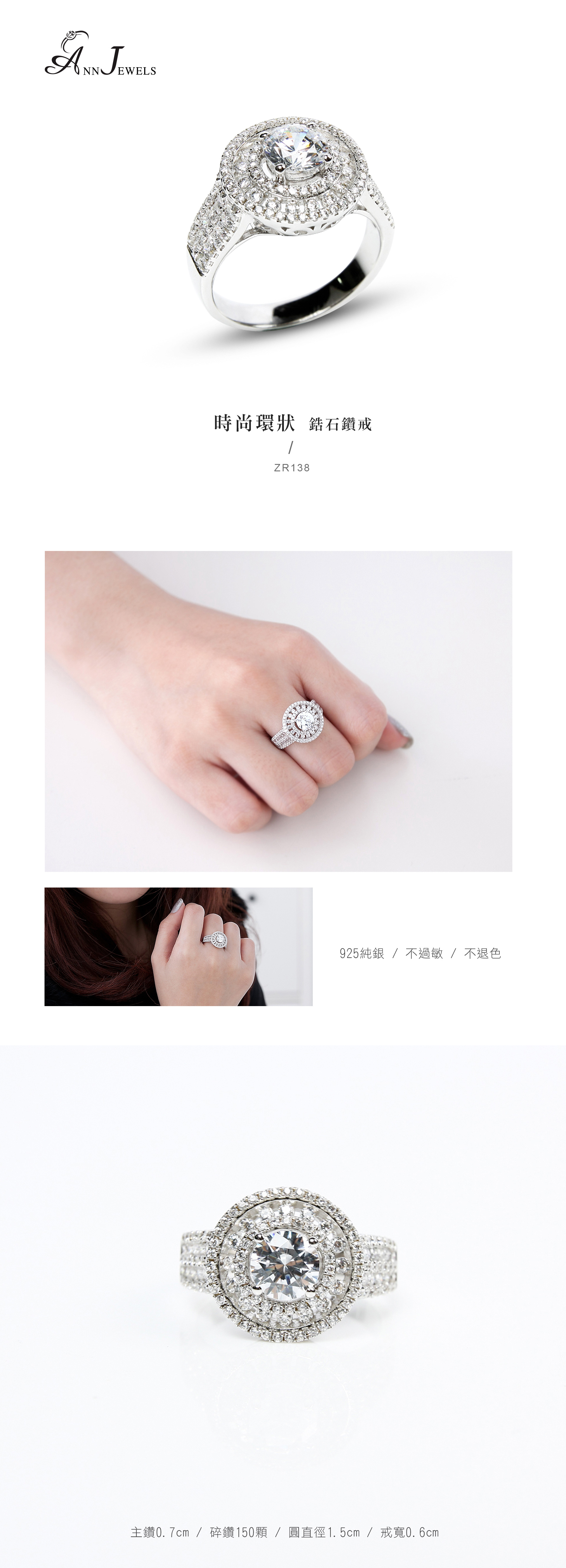| 925純銀 | 主石0.7cm 碎鑽150顆 圓直徑1.5cm | 戒指1個 |