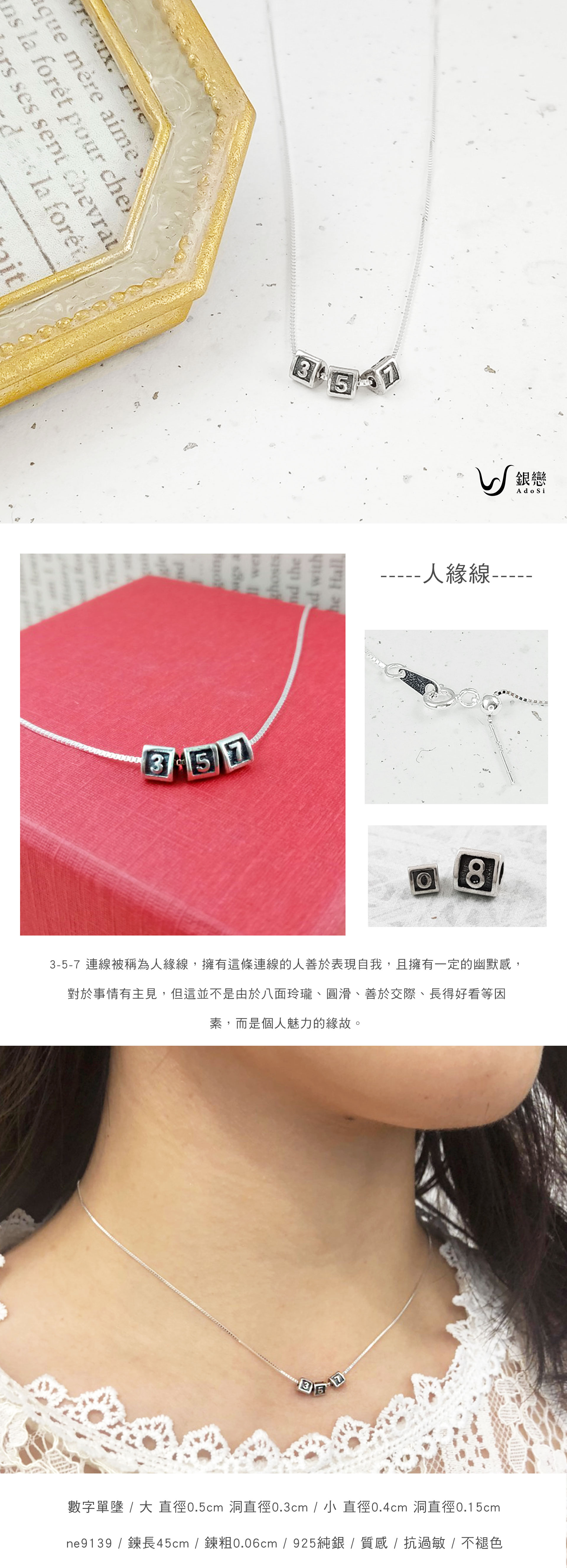 925純銀|生命靈數項鍊.357人緣線 ne9139-p901496A-3-5-7