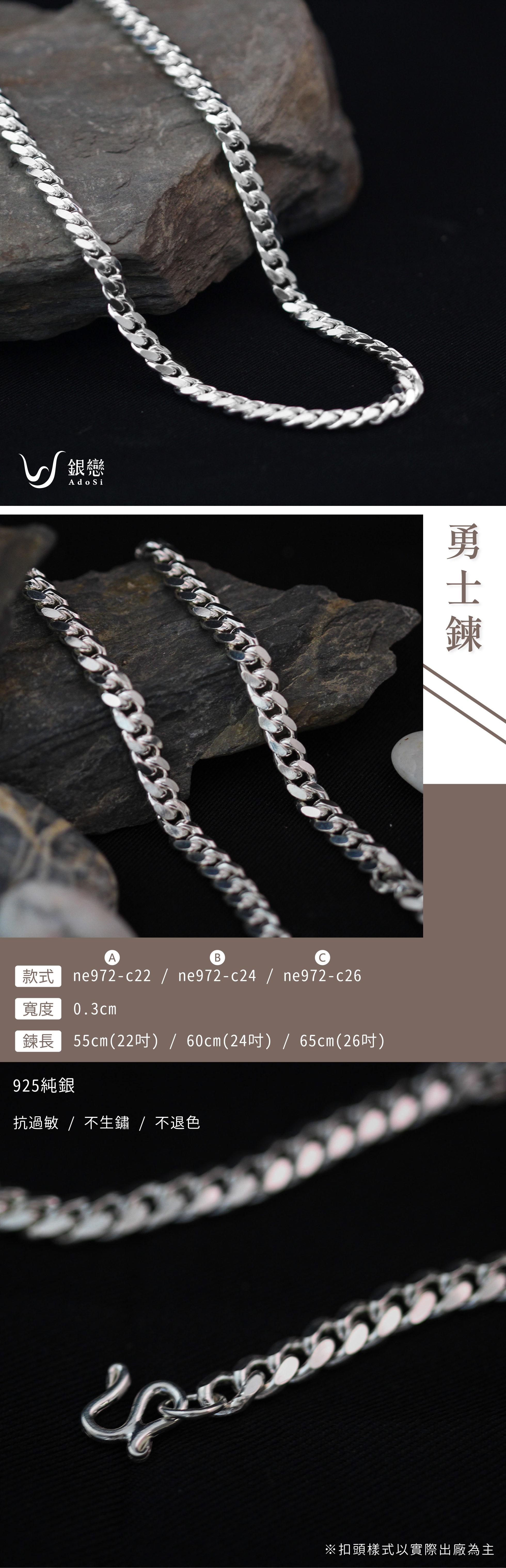 | 今年最新流行925純銀時尚精品新登場 展現銀飾最佳硬度與光澤,輝映出高貴寶石的價值 具有抗過敏、不退色、不生鏽等商品特性 舉凡送禮用之情侶對戒、情侶對鍊、生日節慶禮物、自用搭配等 兼具流行與時尚的珠寶工藝,絕對是服飾穿搭的絕美單品與禮物 享一年保固,永久免費清潔保養 | ||