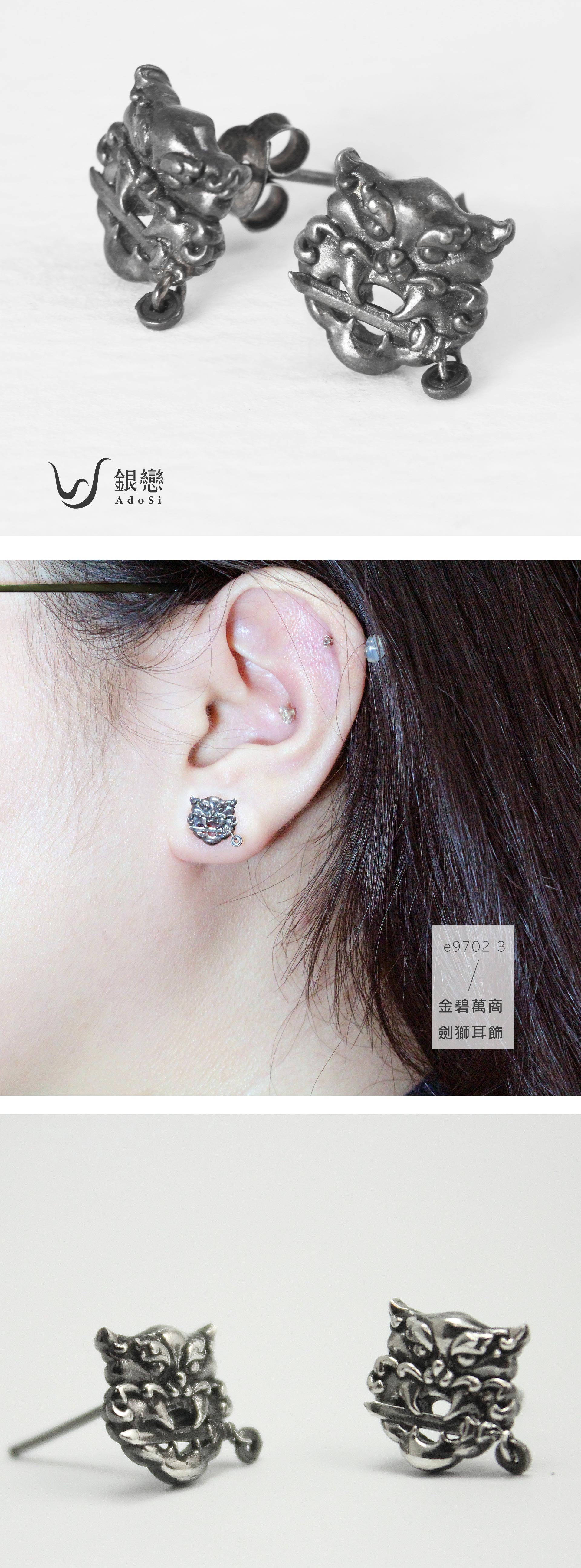 925純銀|金碧萬商劍獅耳環 e9702-3