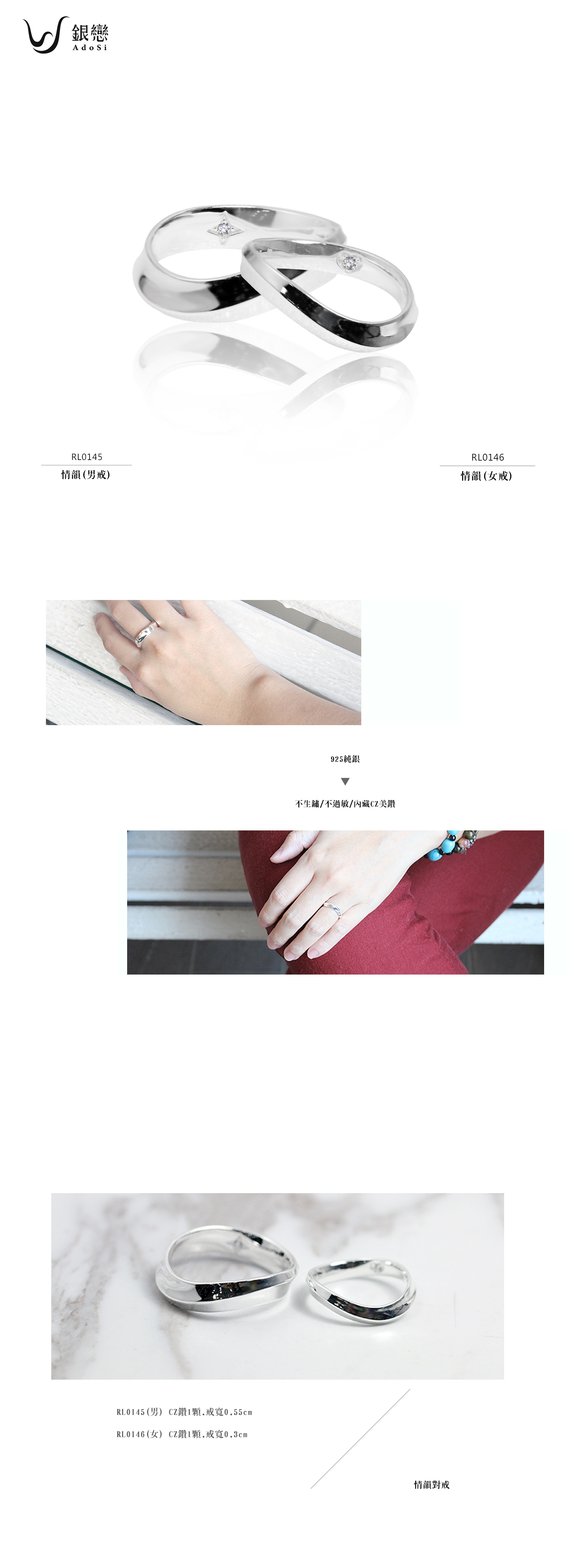 尺寸 / 女款戒寬0.3cm,男款戒寬0.55cm