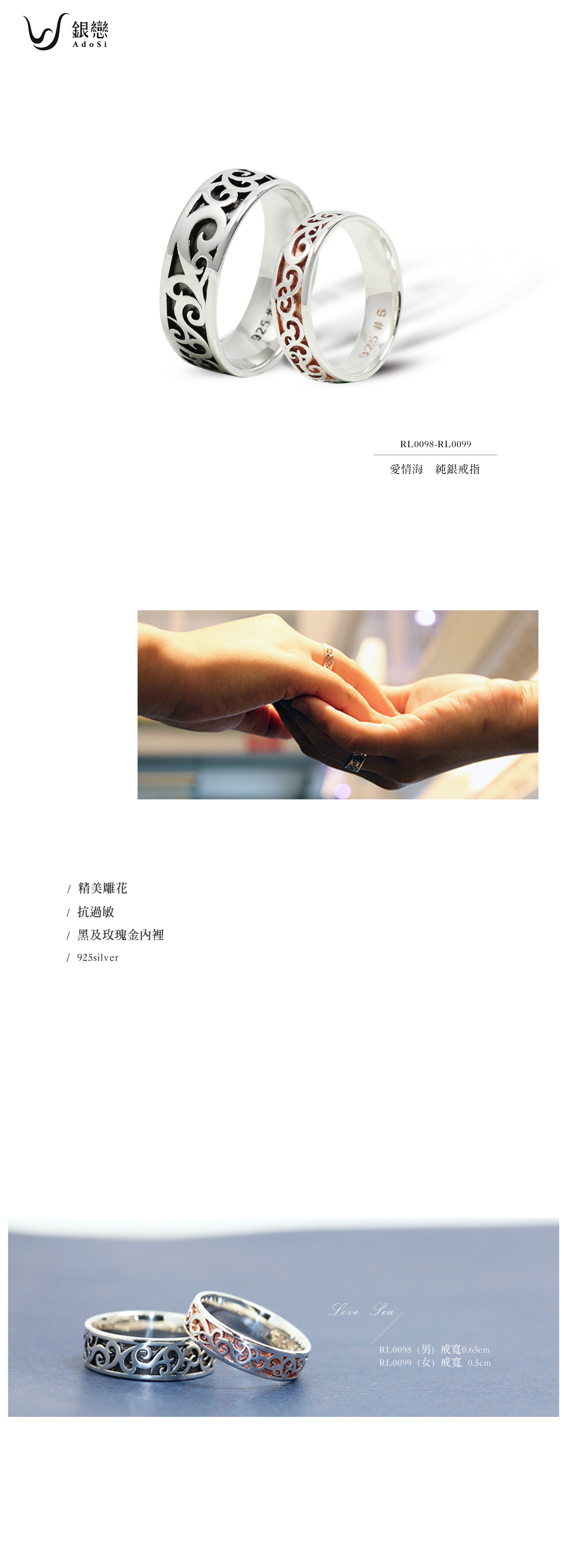 尺寸 / 女款戒寬0.5cm,男款戒寬0.65cm