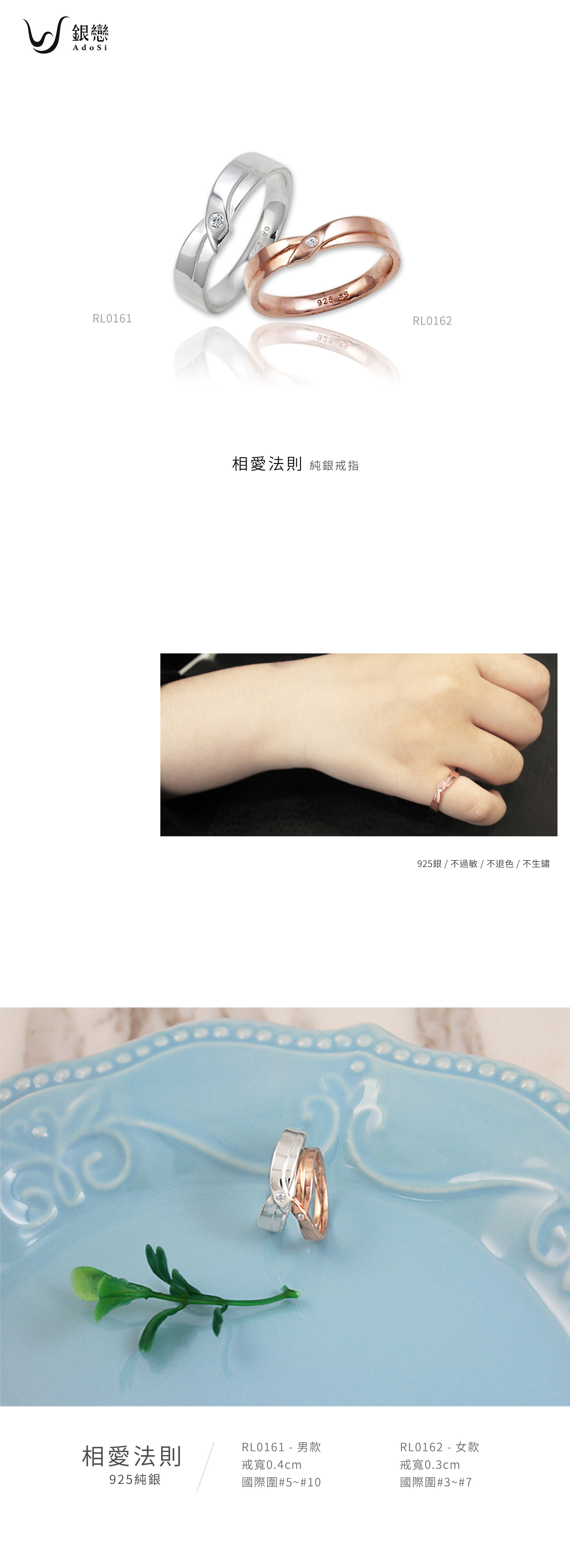 | 925純銀具有抗過敏、不退色、不生鏽等商品特性 舉凡送禮用之情侶對戒、情侶對鍊、生日節慶禮物、自用搭配等 兼具流行與時尚的珠寶工藝,絕對是服飾穿搭的絕美單品與禮物 享一年保固,永久免費清潔保養 | ||