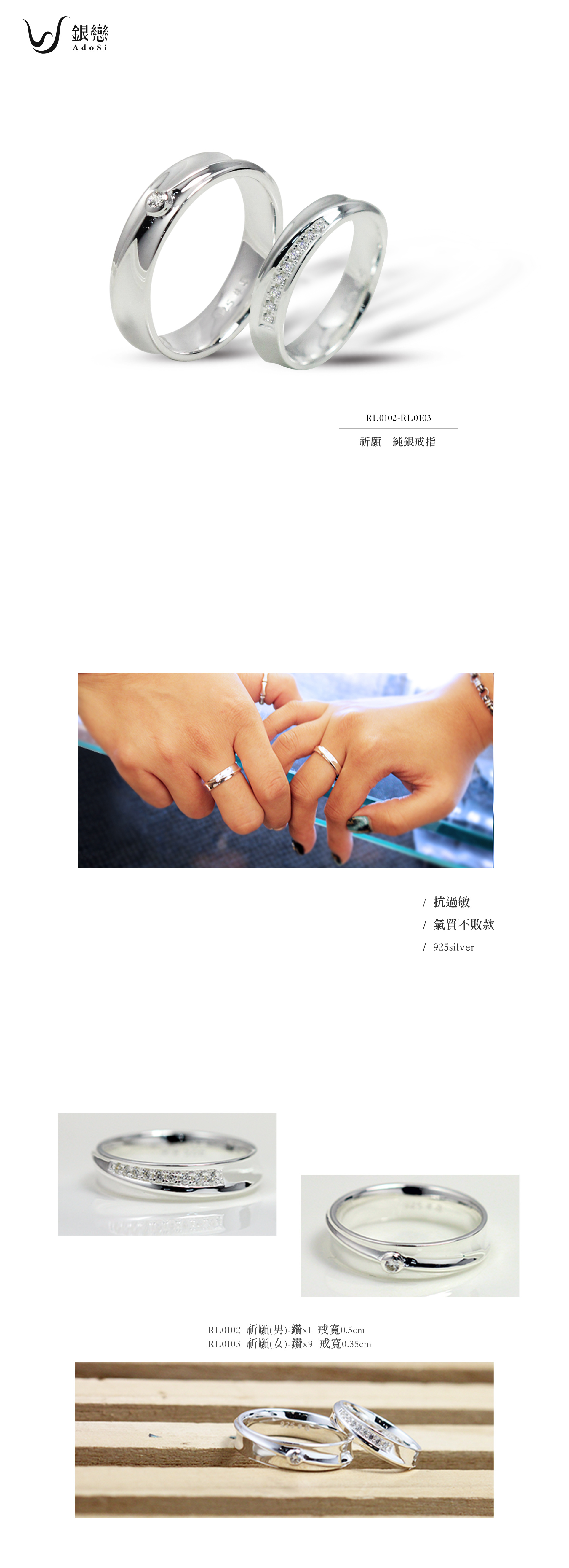 | 925純銀 | 女款-戒寬0.35cm | 戒指1個 |