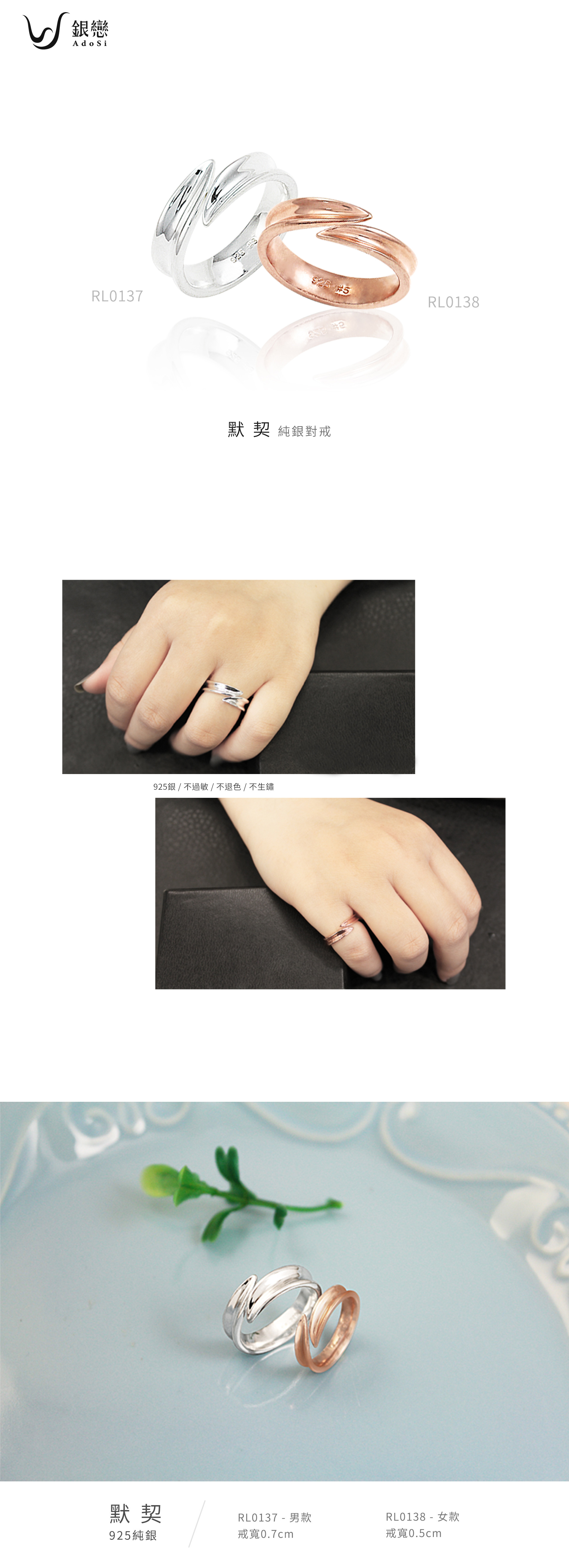 尺寸 / 女款戒寬0.5cm,男款戒寬0.7cm