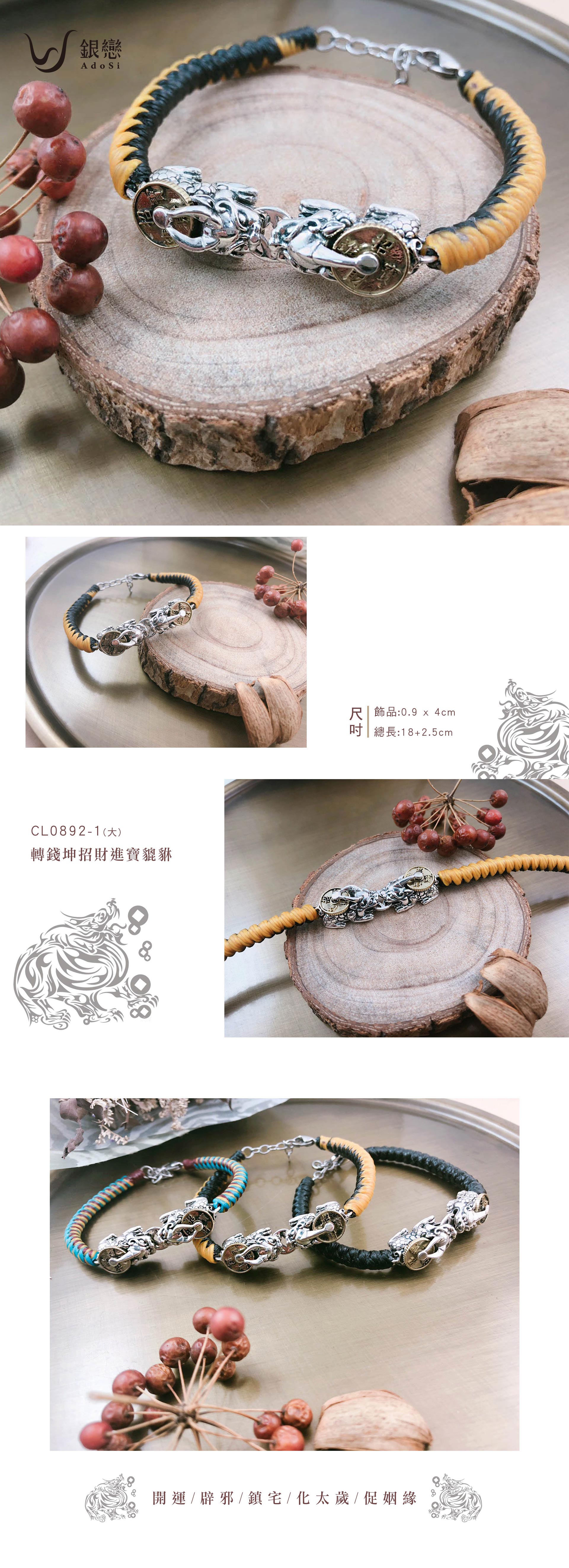 925純銀|轉錢坤招財進寶貔貅手鍊(大).黃+黑 CL0892-1