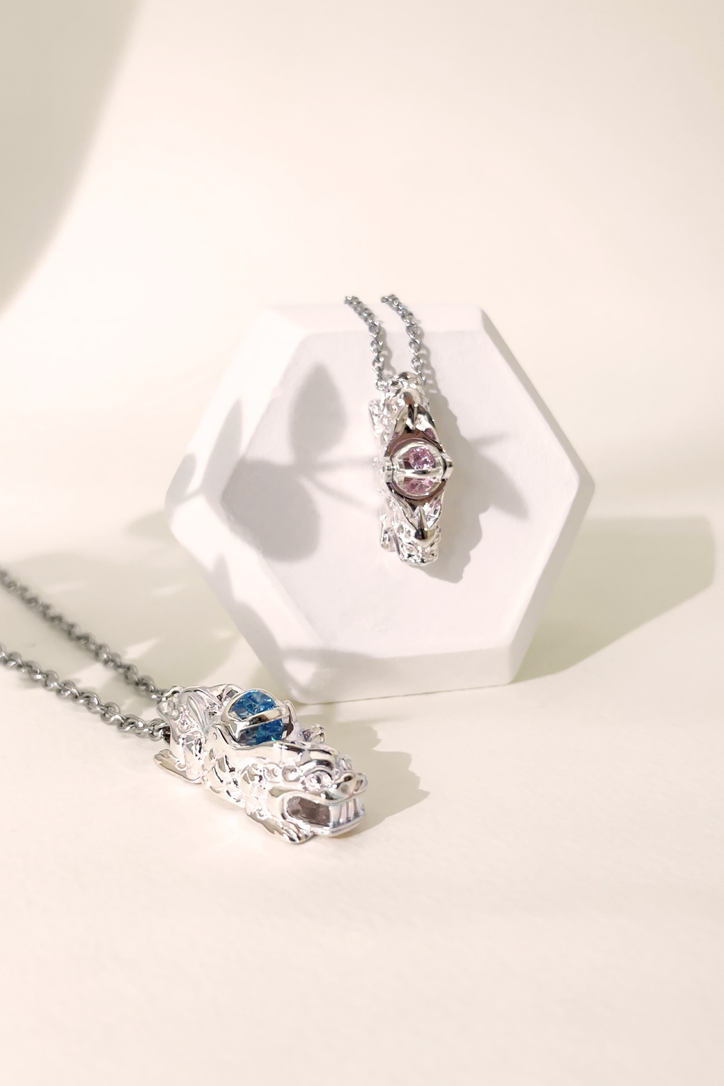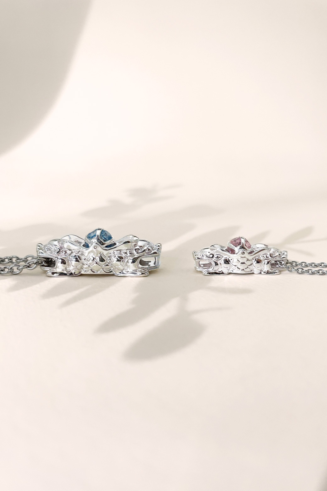 925純銀|五鑽球靈動雙貔貅項鍊(粉) CL1066-4-N1